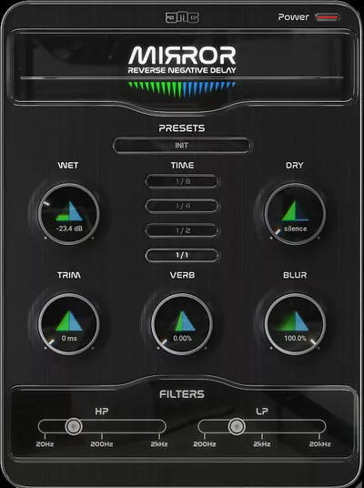 Introducing: Mirror New plugin. We are proudly introducing our new plugin. Mirror by JMG Sound is a reverse negative delay (first of a kind). Mirror is a plugin that sees the future. It reverses your audio, applies effects and plays it back before the event even begins. Mirror would automatically create the much-loved reverse reverb and snare effects in seconds, allowing you to focus on the sound, not the process. Reverse negative delay means the reverse effect is heard before the original sound. This is achieved by reporting a fake latency to the DAW, which then compensates, perfectly aligning the end of the effect with the start of your original sound. You can also apply the reverb effect and filters before the sound is reversed.