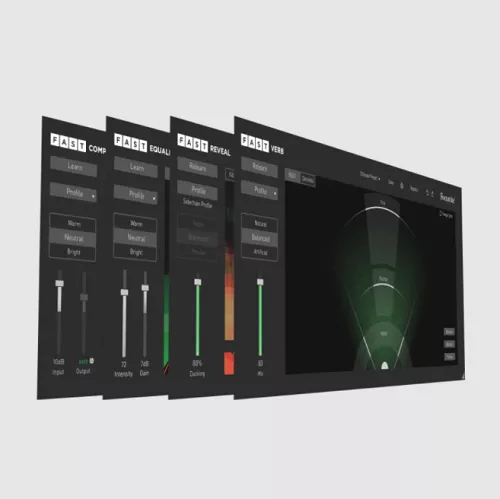 The FAST range has been designed to keep you in the creative flow, so you can focus on making music. The powerful AI will adapt the settings to your audio and instruments so that you can achieve great sounding results, instantly. The FAST Bundle includes: FAST Compressor, FAST Equaliser, FAST Reveal, and FAST Verb.