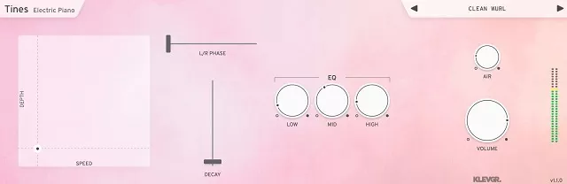 Tines emulates an electric piano. With internal effects like a stereo tremolo, a multiband distortion panel and a subtle roomy reverb, Tines can sound like anything between a dreamy slick Rhodes to a nasty Wurlitzer (however, it is not designed to be a ”vintage” emulation, but a modern and playable instrument). A fine-tuned velocity curve makes Tines a true joy to play on a MIDI keyboard.