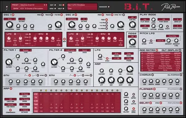 A Rob Papen synthesizer would, of course, be incomplete without the arpeggiator (which can also work in sequencer mode), so a fully-featured Arp is available and has an additional free row that you can use to modulate other parts of B.I.T. by using the Modulation Matrix.